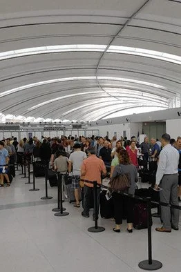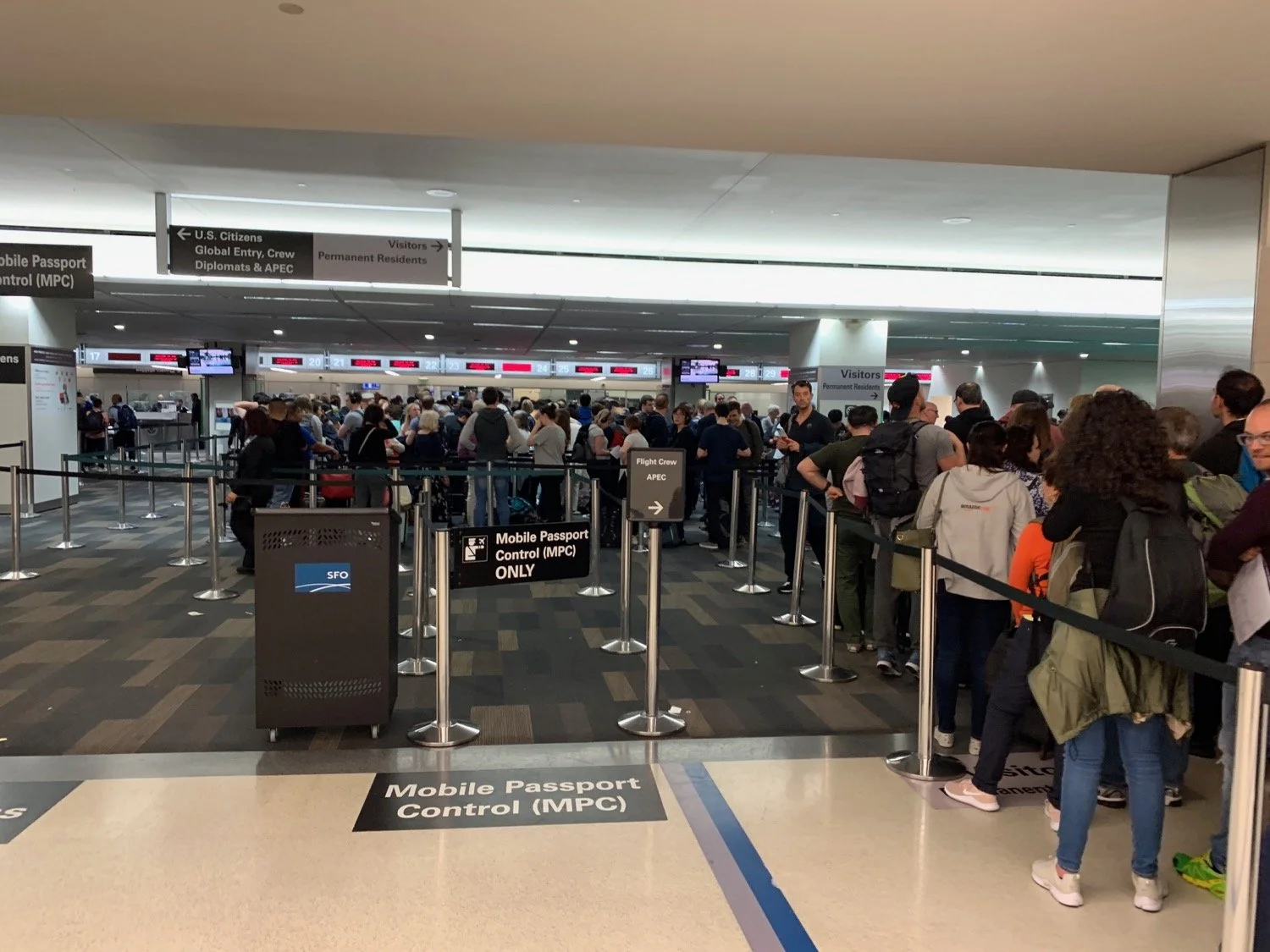 So, we got in line with the other 10,000 people and moved like cows in a herd. It was bad. It was painful. But, luckily, after about 20 minutes, we entered a new area of CBP and there it was! There was a sign for "Mobile Passport Control." And no one was in that line! Literally, not one person. In fact, it was roped off. I had to go find a CBP officer and have them open up the lane for us.